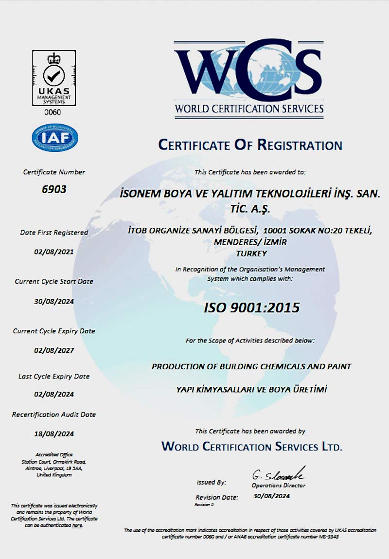 Isonem Boya ve Yalıtım Teknolojileri personeli, kalite yönetim sistemi için kalite hedeflerini sağlama bilincinde olup ve bu sisteme süreklilik sağlayan yaklaşımla çalışırlar.